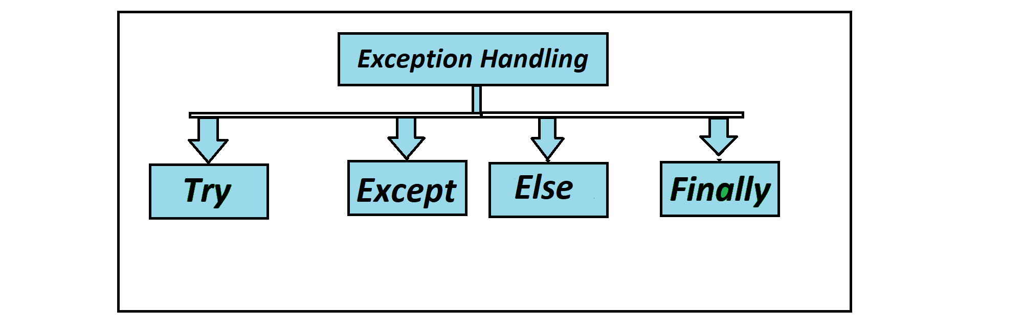 Exception Handling के उपयोग से Begginer के लिए किसी Error / Exception को Control करना सरल है | Exception Handling Python मे एक process है | जो program मे आने वाली error को handle करती है |python मे Exception (error) को handle करने के लिए नीचे दीये गए keywords का उपयोग किया जाता है | इन keywords का उपयोग conditional statements के जैसे ही किया जाता है , जैसे try block के बाद except block चलेगा except के बाद else block
